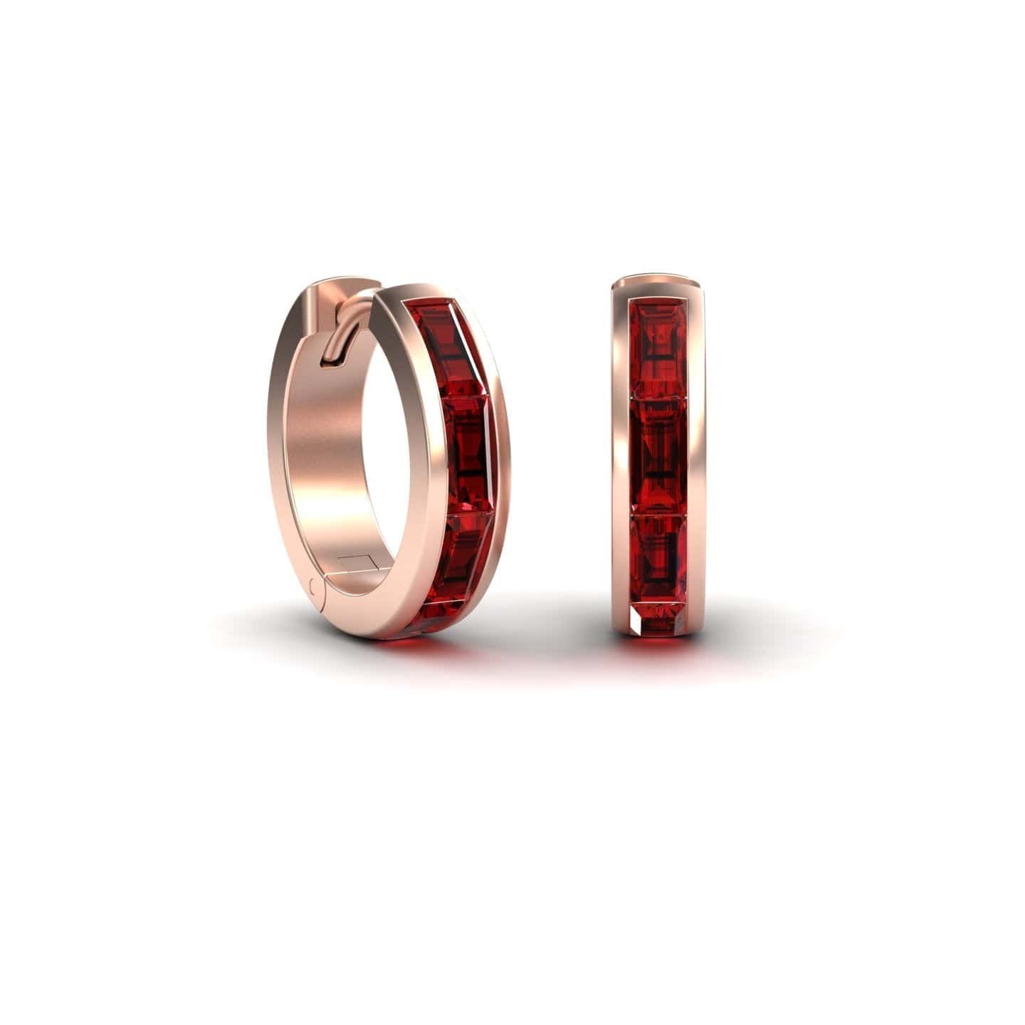 Lab Grown Ruby Channel-Set Baguette Hoop Earrings - Vera