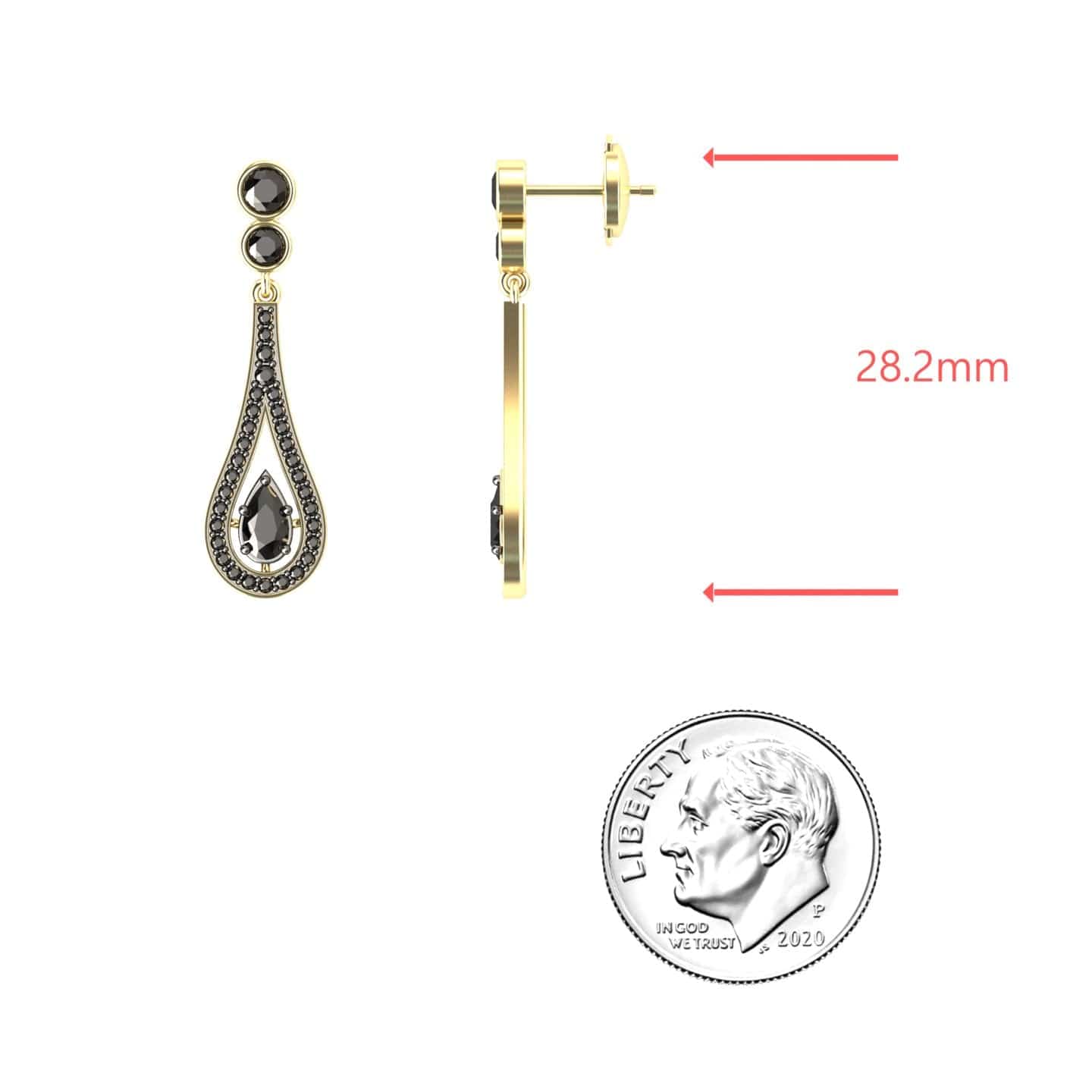Dramatic and elegant, the Sandra Black Diamond Teardrop Statement Earrings feature a stunning pear-shaped black diamond surrounded by shimmering round-cut accents. Designed to command attention, these drop earrings are available in 14K white gold, rose gold, yellow gold, and blackened gold—perfect for luxurious evening style.