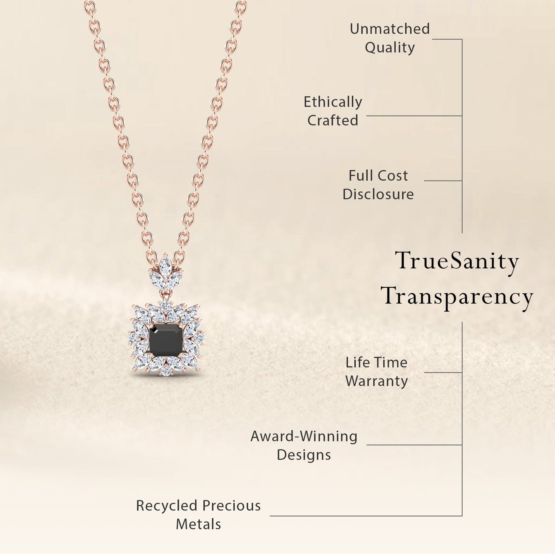 Make a bold statement with the Zeina necklace, showcasing a striking 0.50 ct emerald-cut black diamond surrounded by a halo of dazzling white diamonds. Expertly crafted in your choice of 14K white, rose, yellow, or blackened gold, this timeless necklace blends dramatic contrast with elegant brilliance. Perfect for special occasions or everyday luxury.