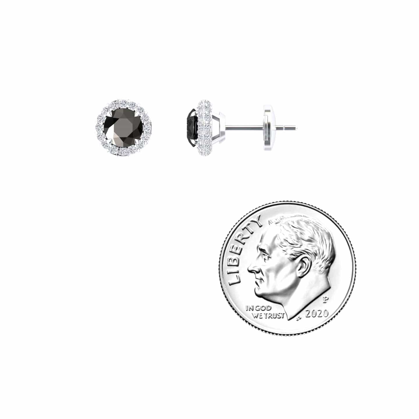 Elevate your style with our Black & White Diamond Halo Earrings - Jing, featuring a striking round-cut black diamond at the center, surrounded by a dazzling halo of white diamonds. Designed for timeless elegance, these luxurious earrings are available in White Gold, Rose Gold, Yellow Gold, and Blackened Gold, making them a perfect statement piece for any occasion.