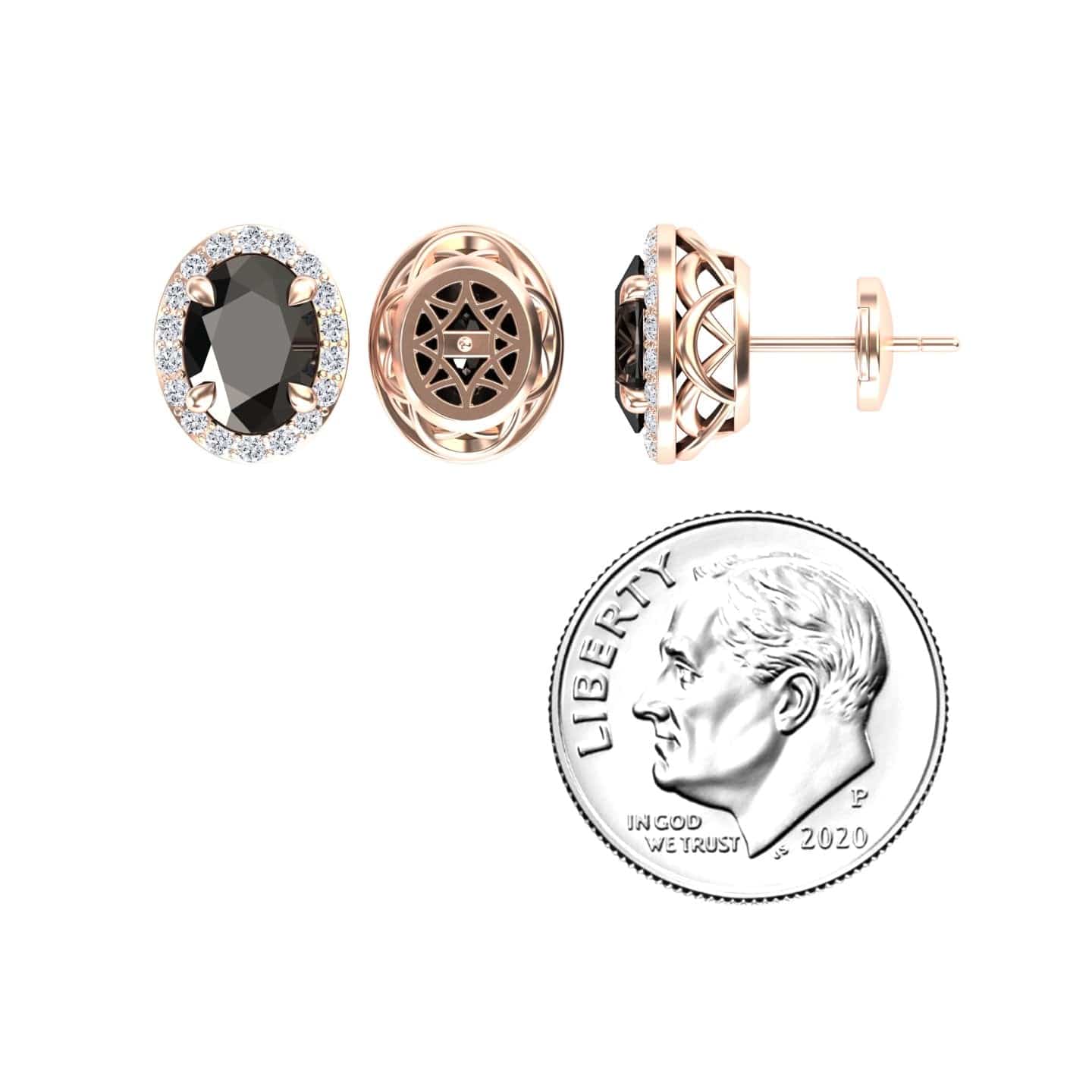 Make a bold and timeless statement with the Nalini Black & White Diamond Halo Stud Earrings, showcasing a captivating oval black diamond at the center, encircled by shimmering round white diamonds. Offered in White Gold, Rose Gold, Yellow Gold, and Blackened Gold, these earrings bring a dramatic elegance to any ensemble.