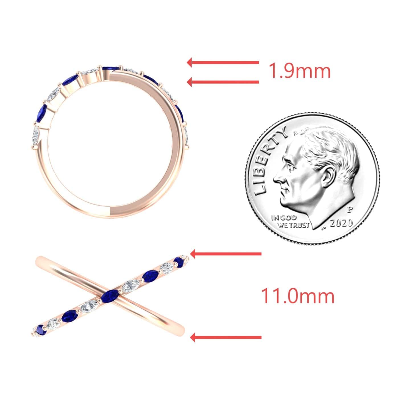 Elegant with a twist, the Blue Sapphire & Diamond Crossover Ring - Gracie showcases 13 marquise-cut stones—alternating blue sapphires and white diamonds—in a graceful, interwoven design. Handcrafted in 14K White, Rose, Yellow, or Blackened Gold, it's a timeless piece with bold sophistication.