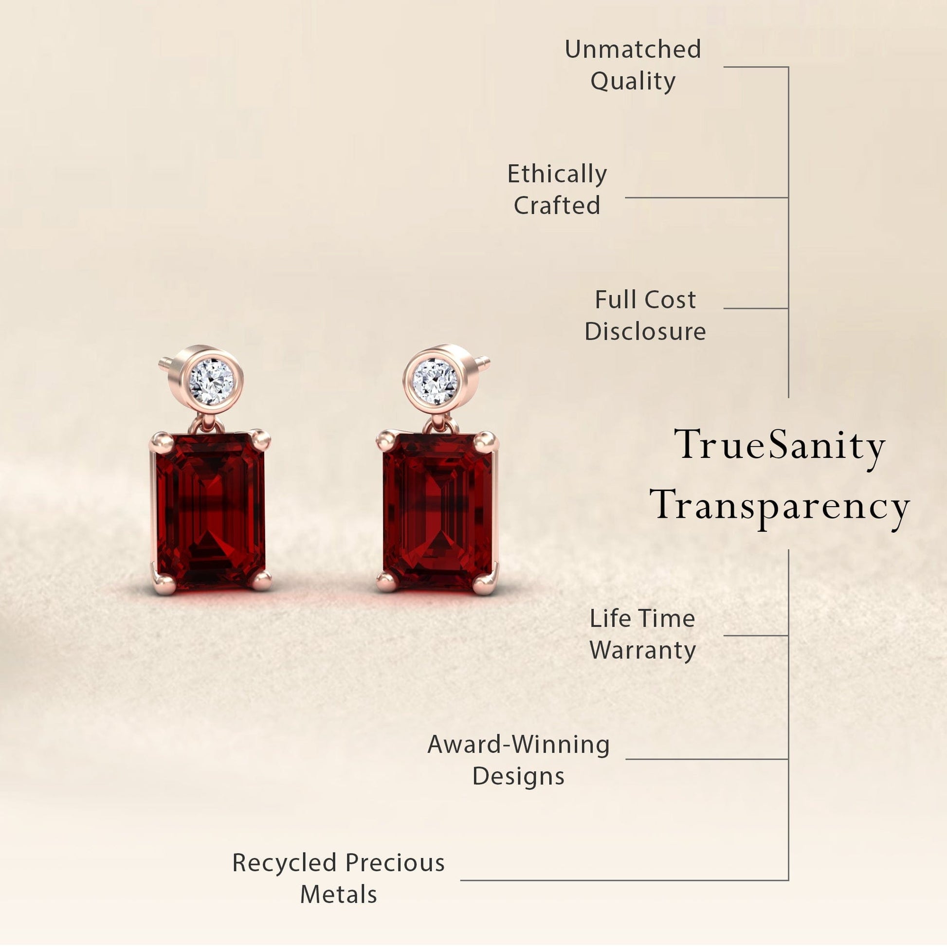 Elevate your style with the Garnet & White Diamond Drop Earrings - Gracia, featuring deep red garnet gemstones that exude warmth and elegance, complemented by dazzling white diamonds. These exquisite earrings are available in White Gold, Rose Gold, Yellow Gold, and Blackened Gold, making them the perfect statement piece for any occasion.