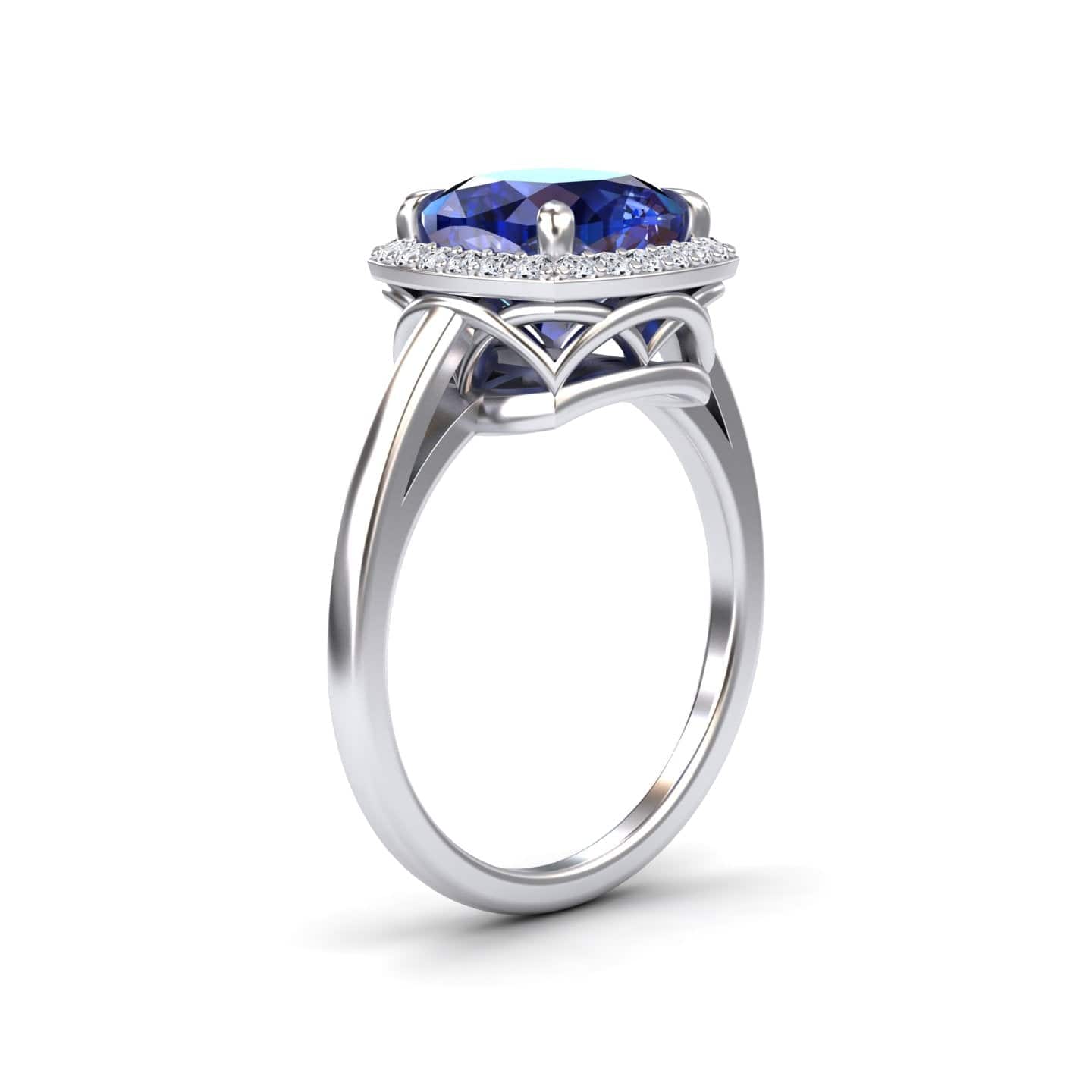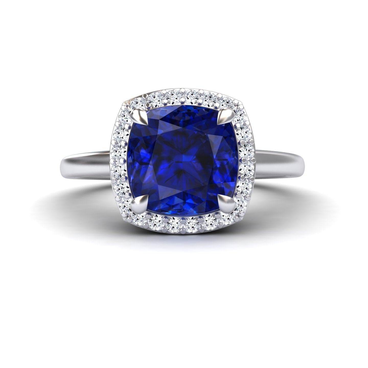 Lab Grown Blue Sapphire & Diamond Halo Ring - Ziva