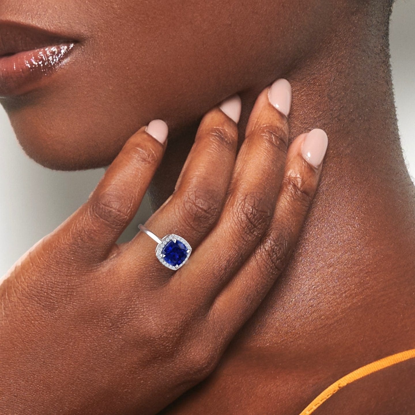 Ziva Lab Grown Blue Sapphire & Diamond Halo Ring