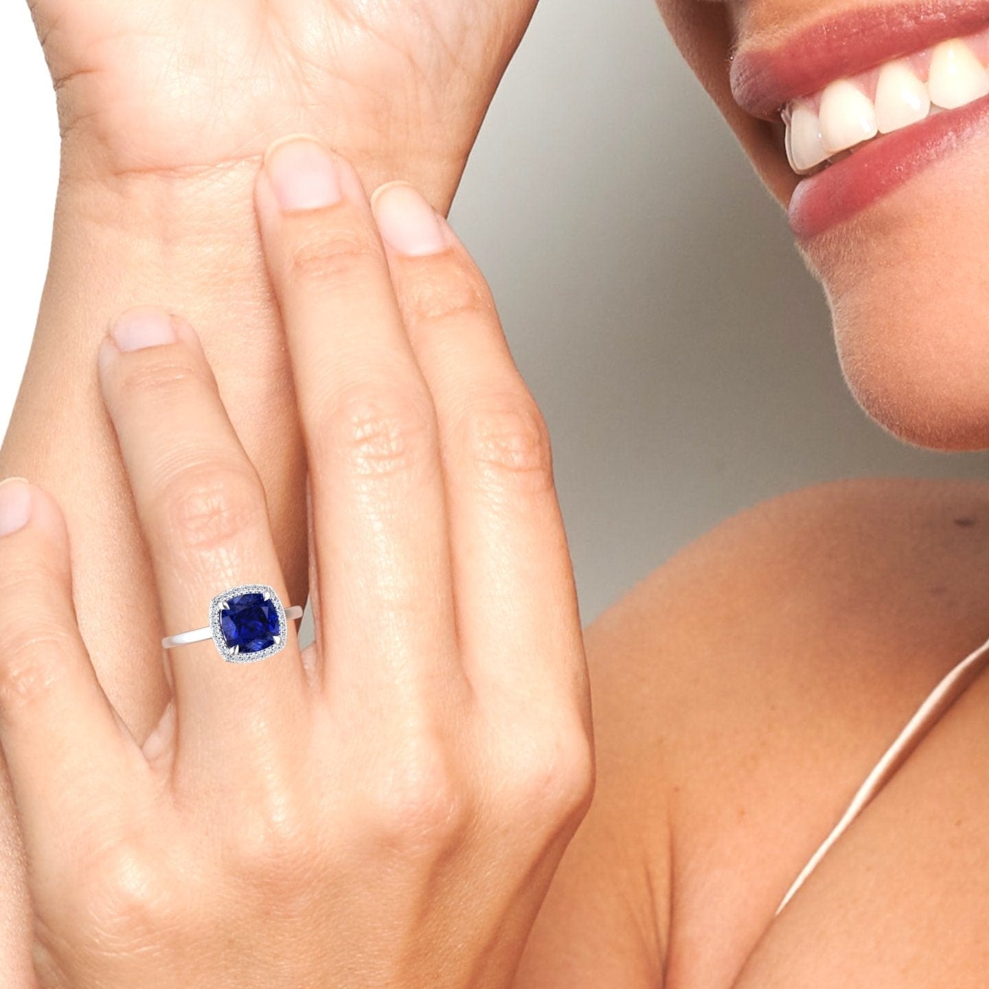 Home / Jewelry / Rings / Sapphire Jewelry / Lab Grown Blue Sapphire & Diamond Halo Ring - Ziva