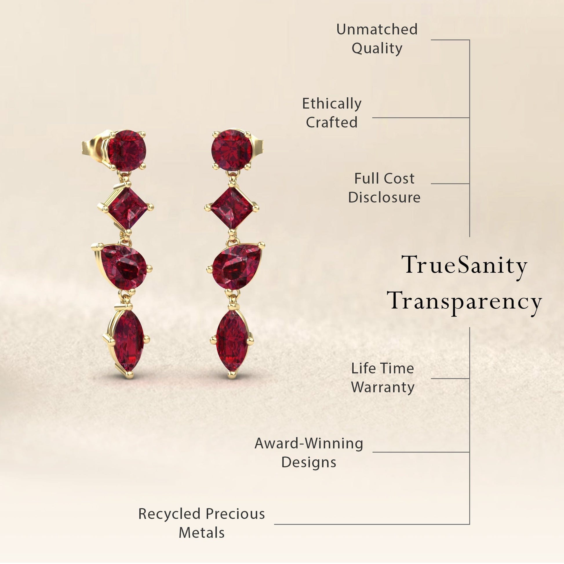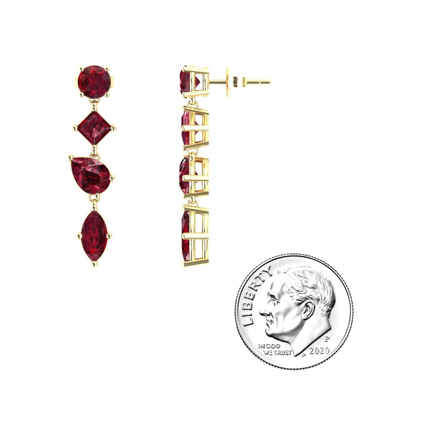 The Lab Grown Ruby Multi-Cut Drop Earrings - Zara exude timeless elegance with a stunning combination of pear, marquise, round, and princess-cut rubies. Available in white gold, rose gold, yellow gold, and blackened gold, these exquisite drop earrings add a bold yet sophisticated touch to any ensemble.