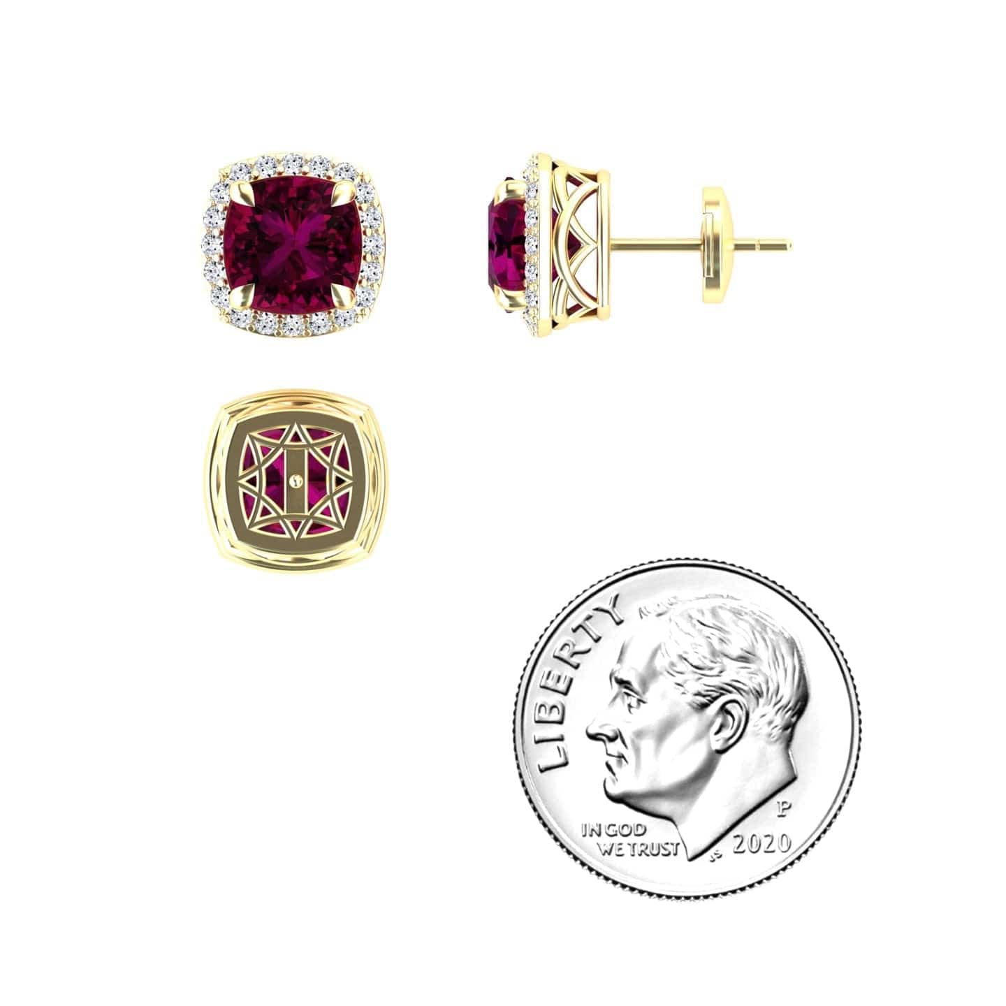 Add a touch of refined luxury with the Rhodolite Garnet & Diamond Halo Earrings - Callie, featuring a deep rose-red rhodolite garnet at the center, encircled by a radiant diamond halo for a stunning contrast. These elegant earrings exude vintage charm and sophistication, making them perfect for any occasion. Available in White Gold, Rose Gold, Yellow Gold, or Blackened Gold for a personalized touch.