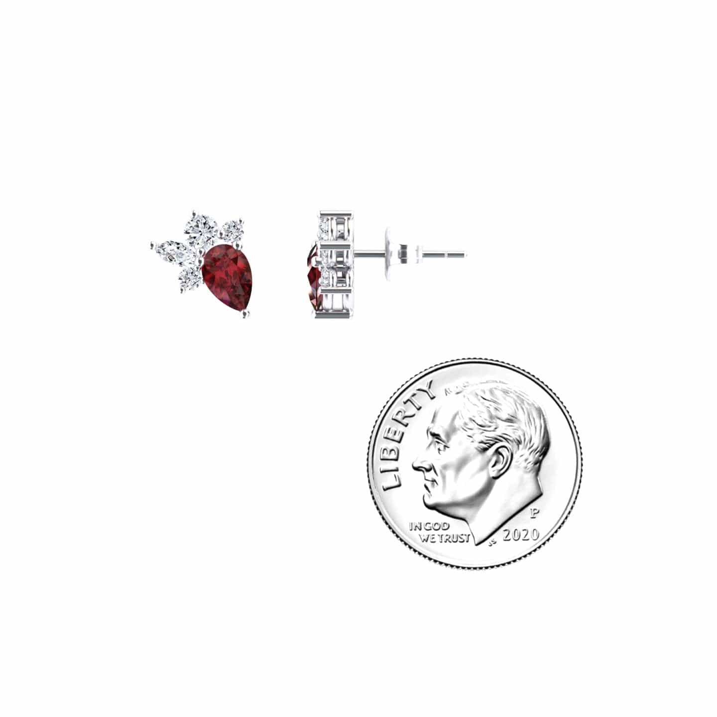 Ruby & Diamond Cluster Stud Earrings - Joan