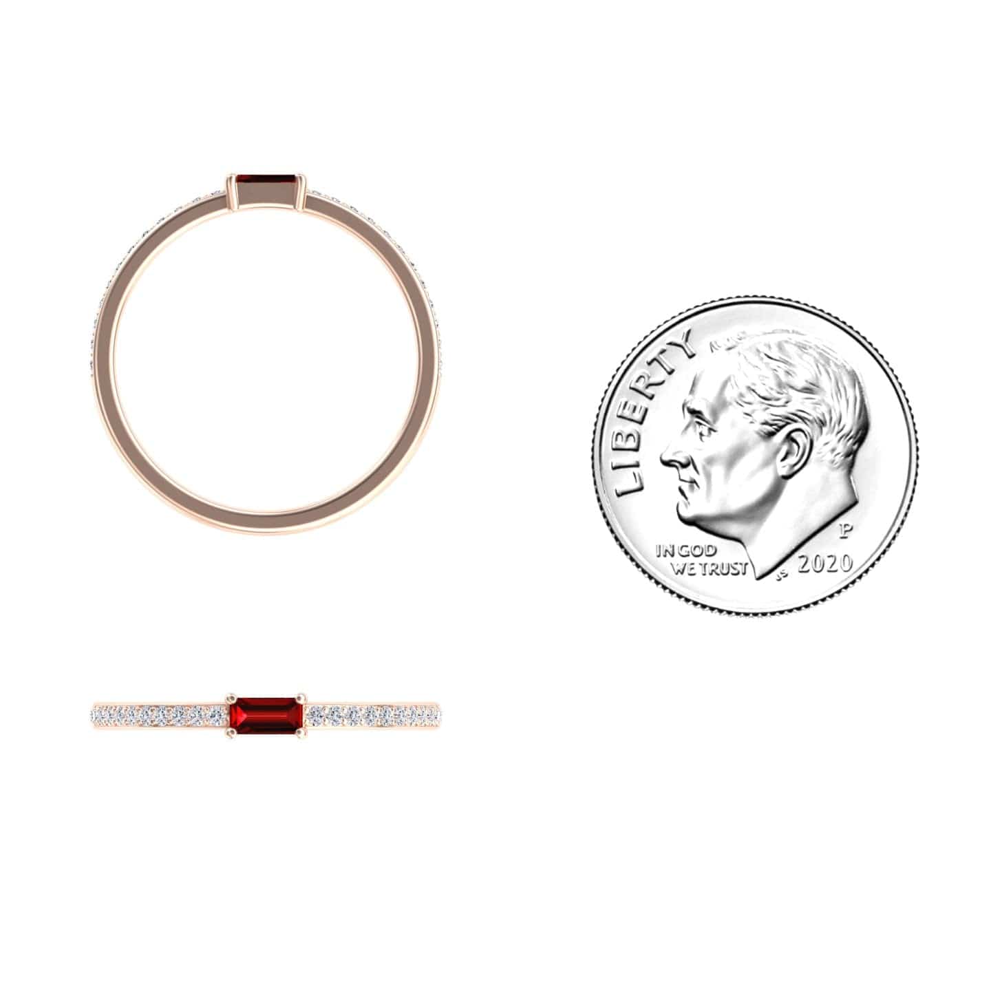 Embrace timeless elegance with our Ruby & Diamond Pave Ring - Dia, showcasing a striking baguette-cut ruby accented by shimmering diamond pave. Crafted in 14K gold, this radiant ring is perfect for stacking or wearing solo. Available in White Gold, Rose Gold, Yellow Gold, and Blackened Gold.