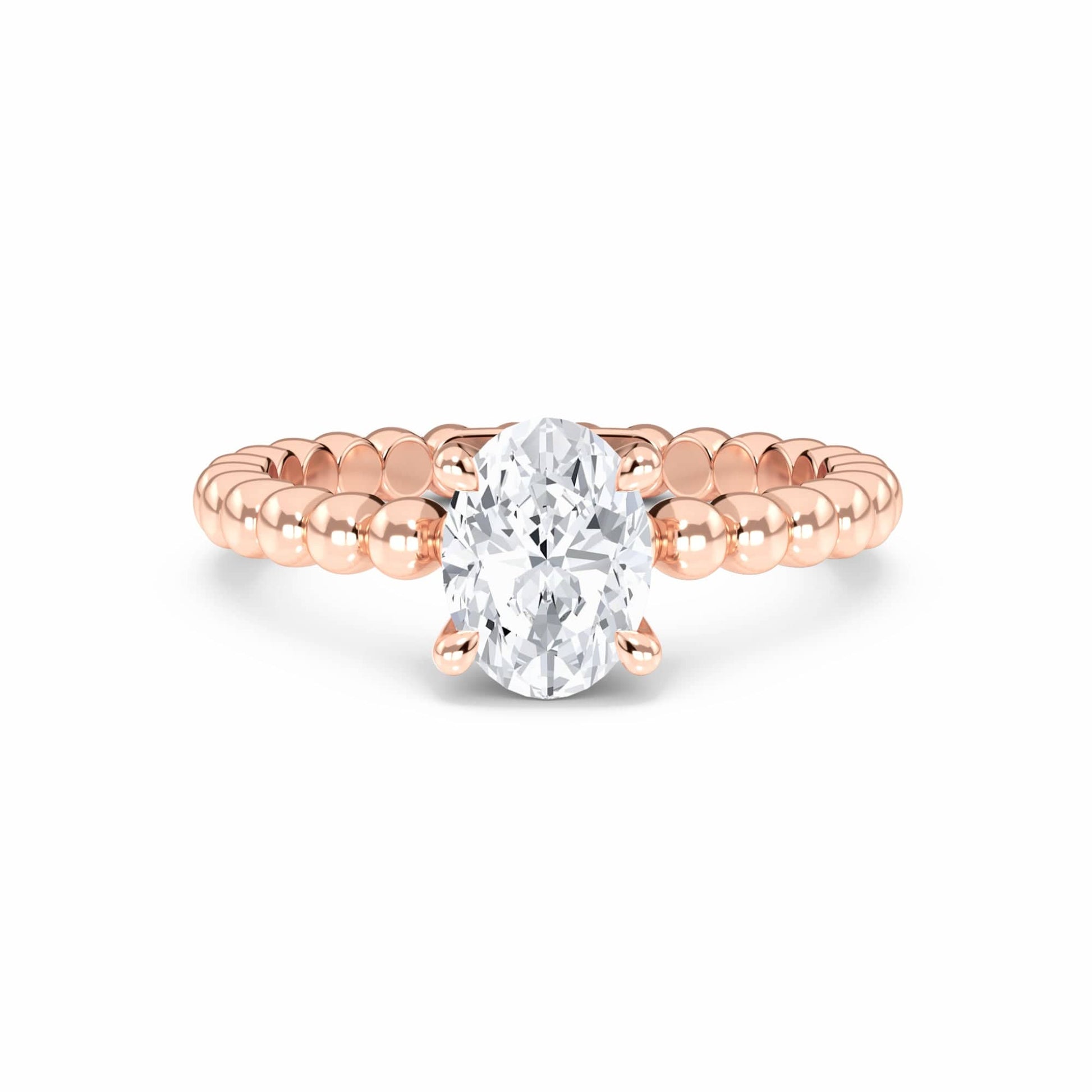 Home / White Diamond Beaded Solitaire Engagement Ring - Rayna - 18K Rose Gold - 0.700 Carat Oval Diamond