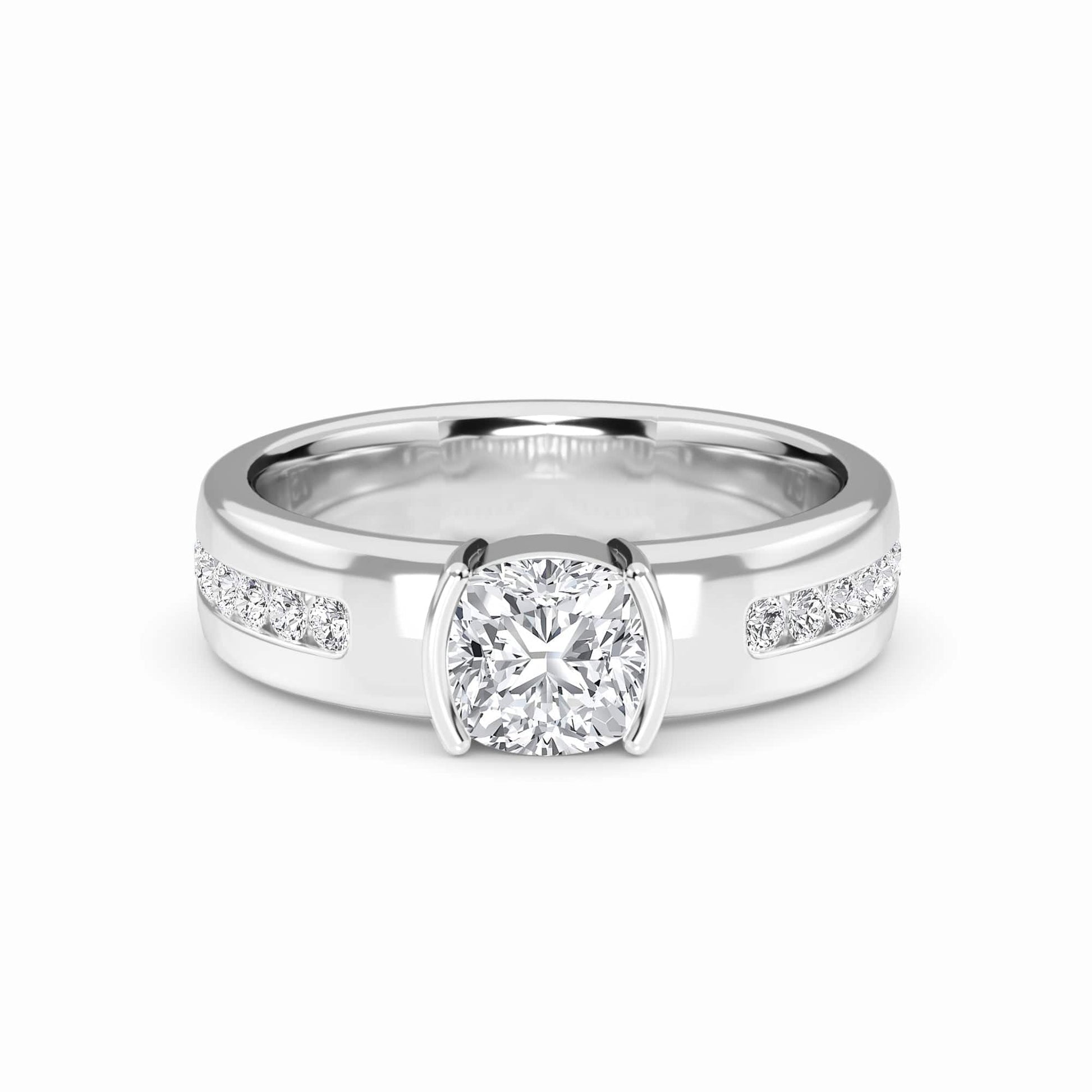 Home / White Diamond Bezel-Set Accented Engagement Ring - Hollis - 18K White Gold - 1.050 Carat Cushion Diamond