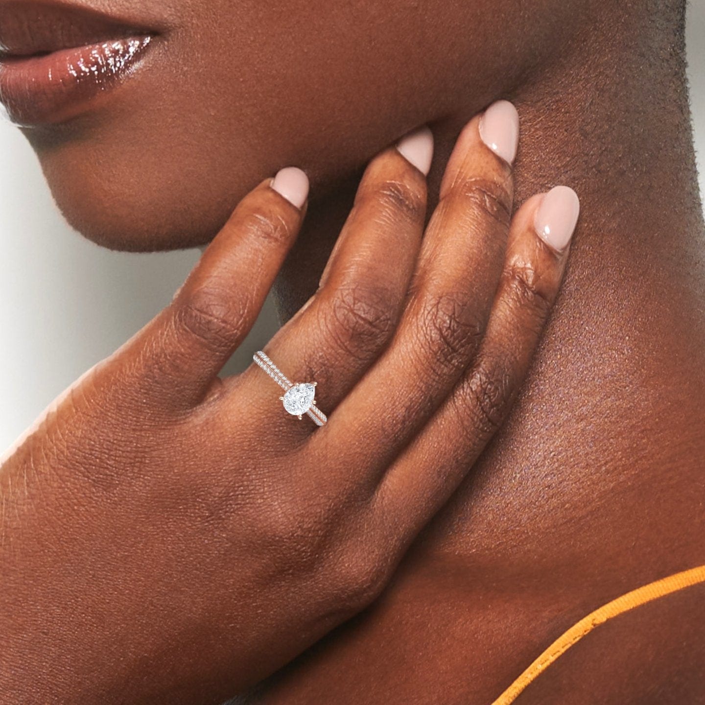 White Diamond Hidden Halo Pave Engagement Ring - Baozhai