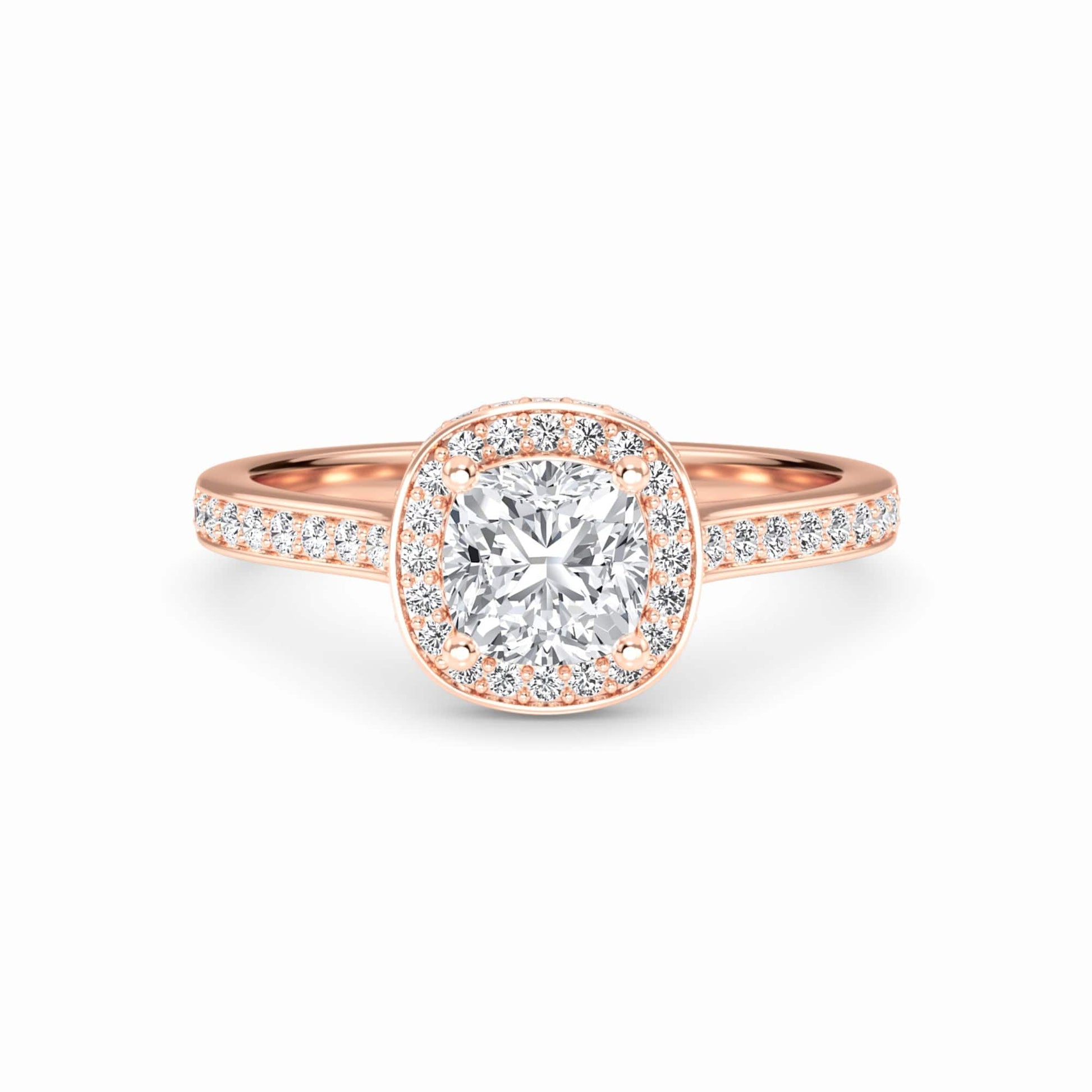 Home / White Diamond Pave Set Classic Halo Engagement Ring - Mallory - 18K Rose Gold - 0.390 Carat Cushion Diamond