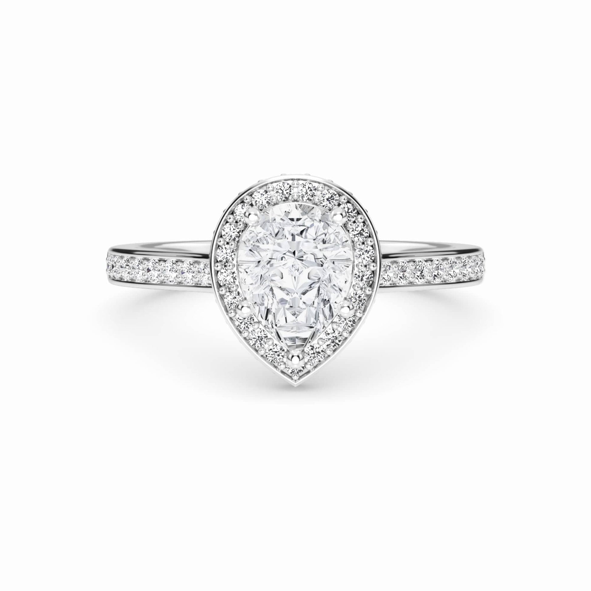 Home / White Diamond Pave Set Classic Halo Engagement Ring - Mallory - 18K White Gold - 0.73 Carat Pear Diamond