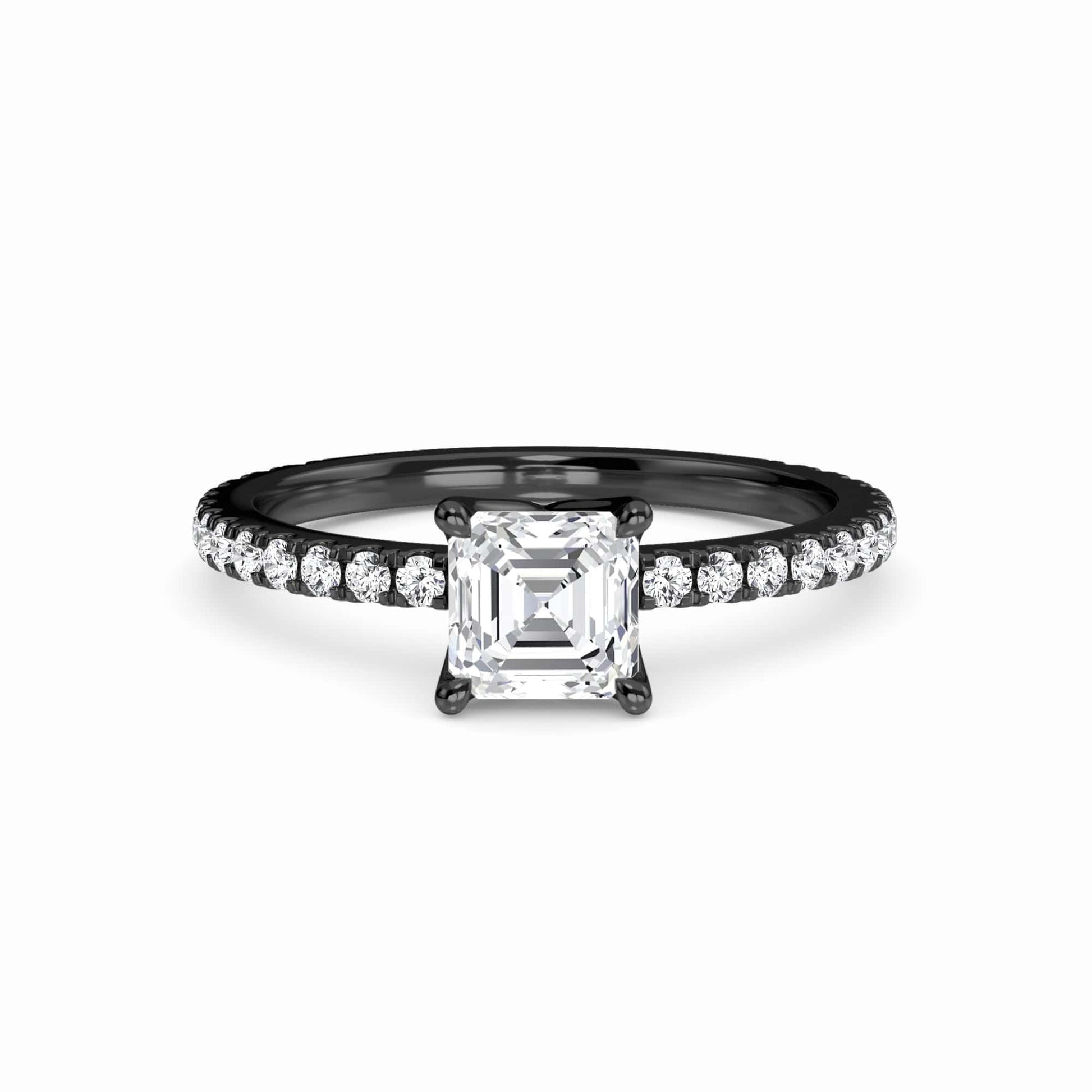 Home / White Diamond Pave Set Four-Prong Solitaire Engagement Ring - Brynlee - 18K Blackened Gold - 0.500 Carat Asscher Diamond
