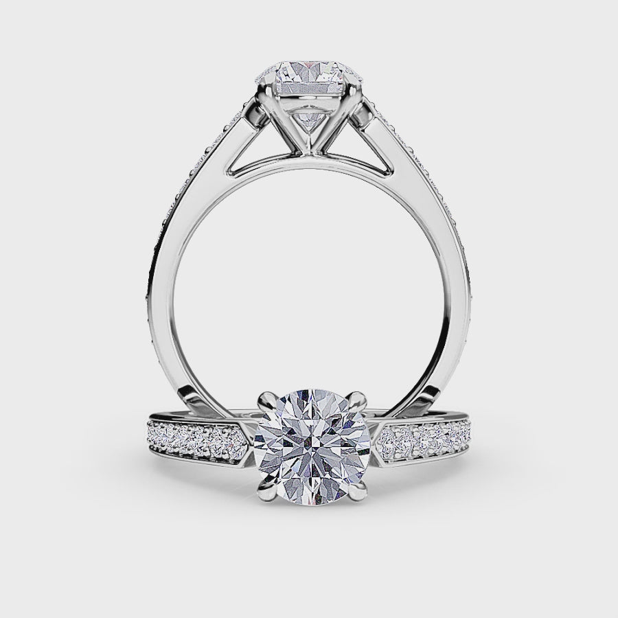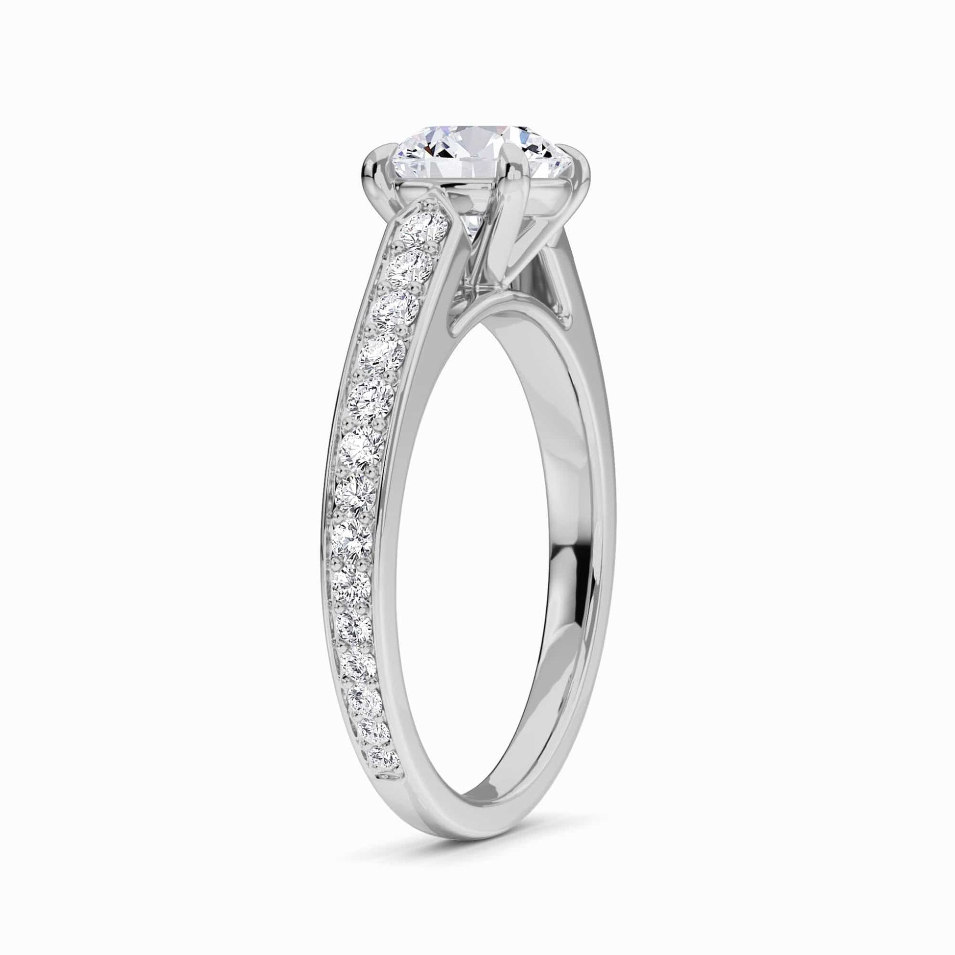 White Diamond Pave Shoulder Solitaire Engagement Ring - Caixia