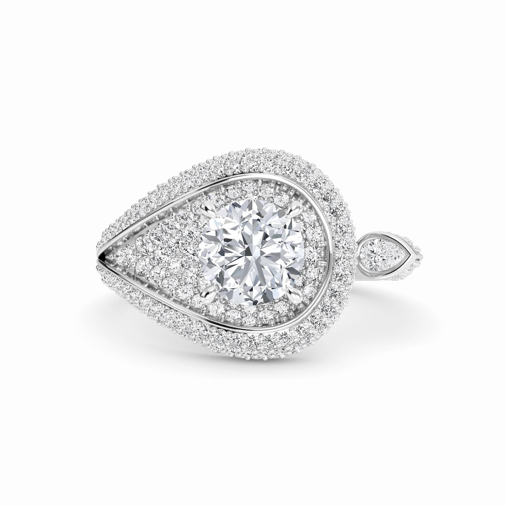 Home / White Diamond Swirl Pave Accented Engagement Ring - Marisol - 18K White Gold - 0.36 Carat Round Diamond