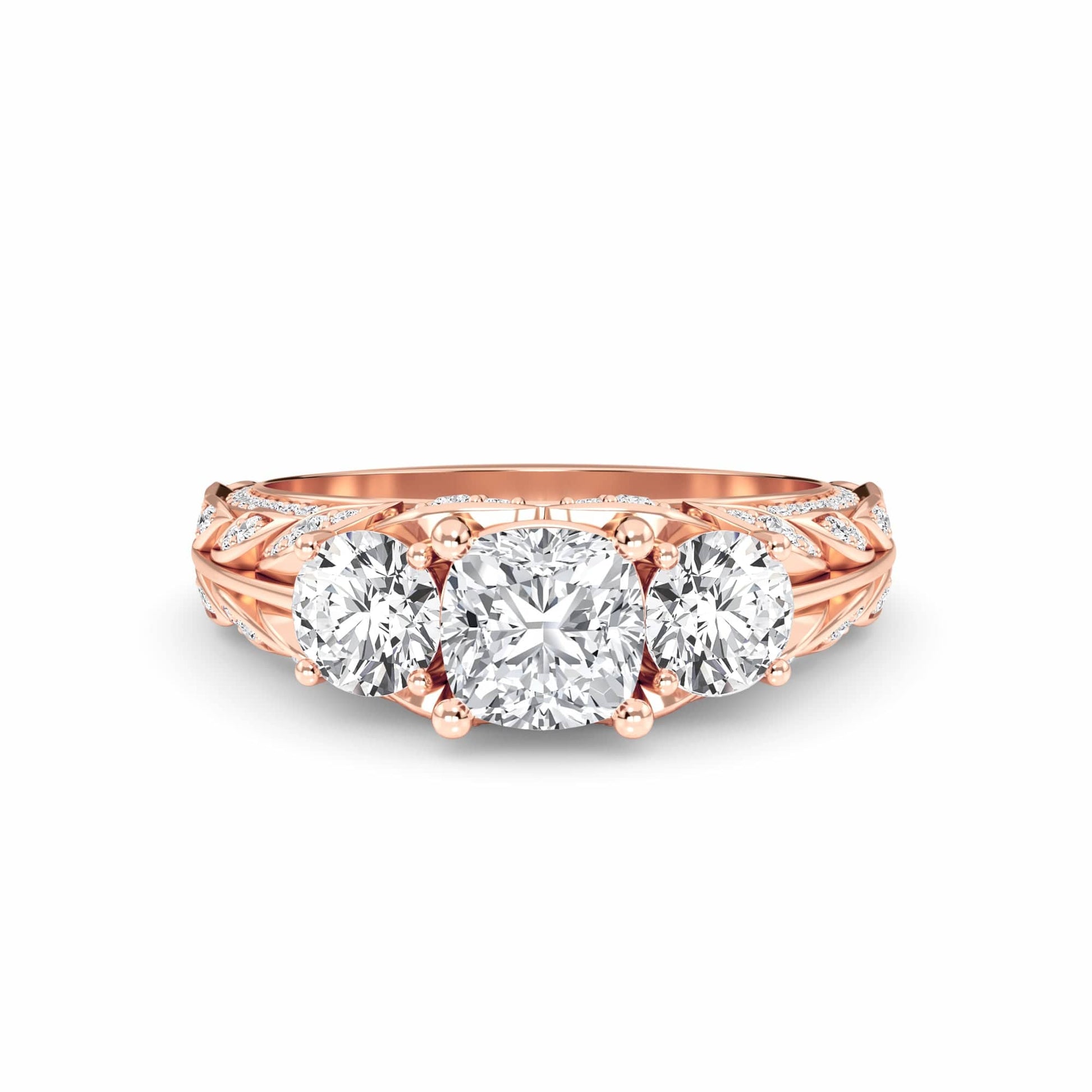Home / White Diamond Vintage-Inspired Three-Stone Ring - Riley - 18K Rose Gold - 0.390 Carat Cushion Diamond