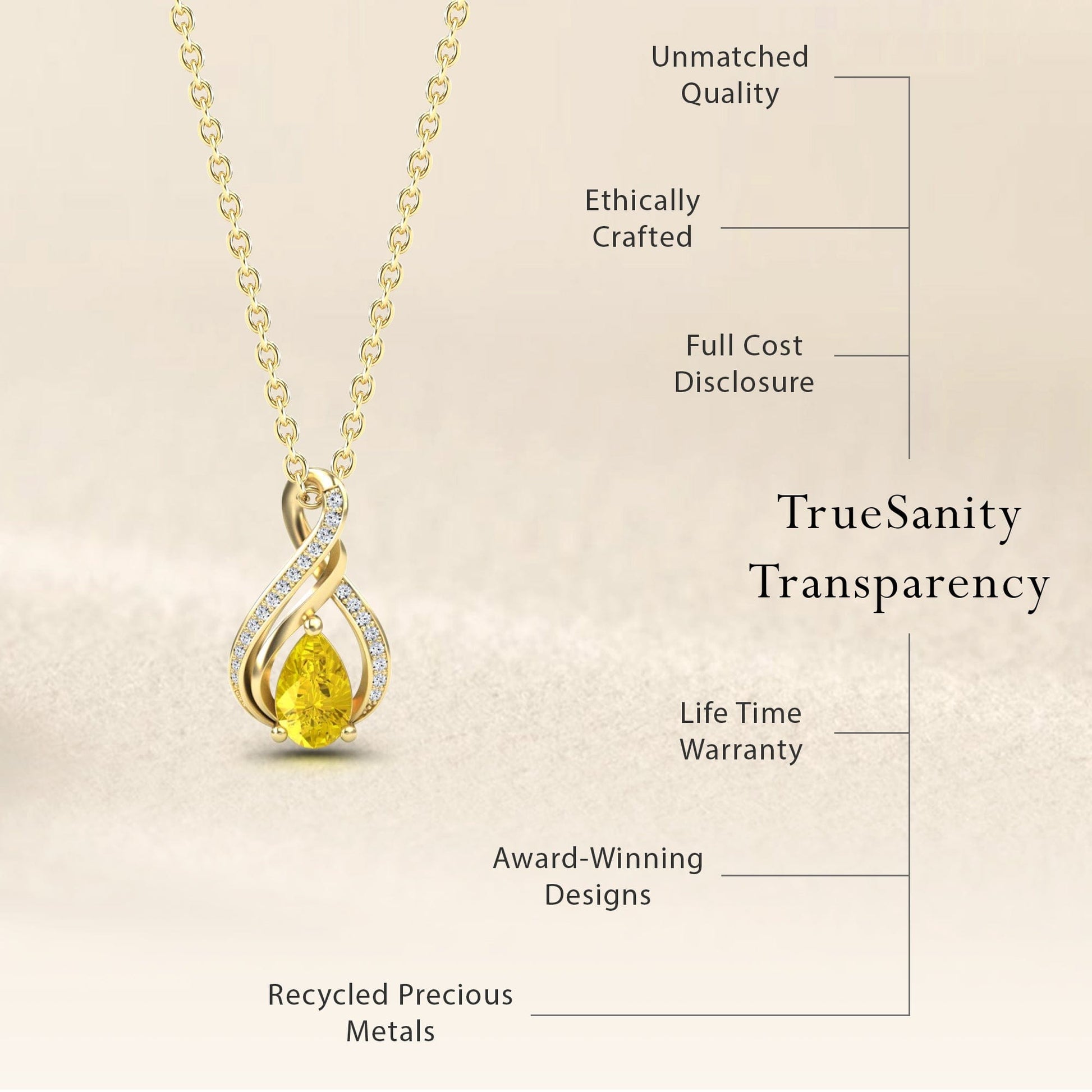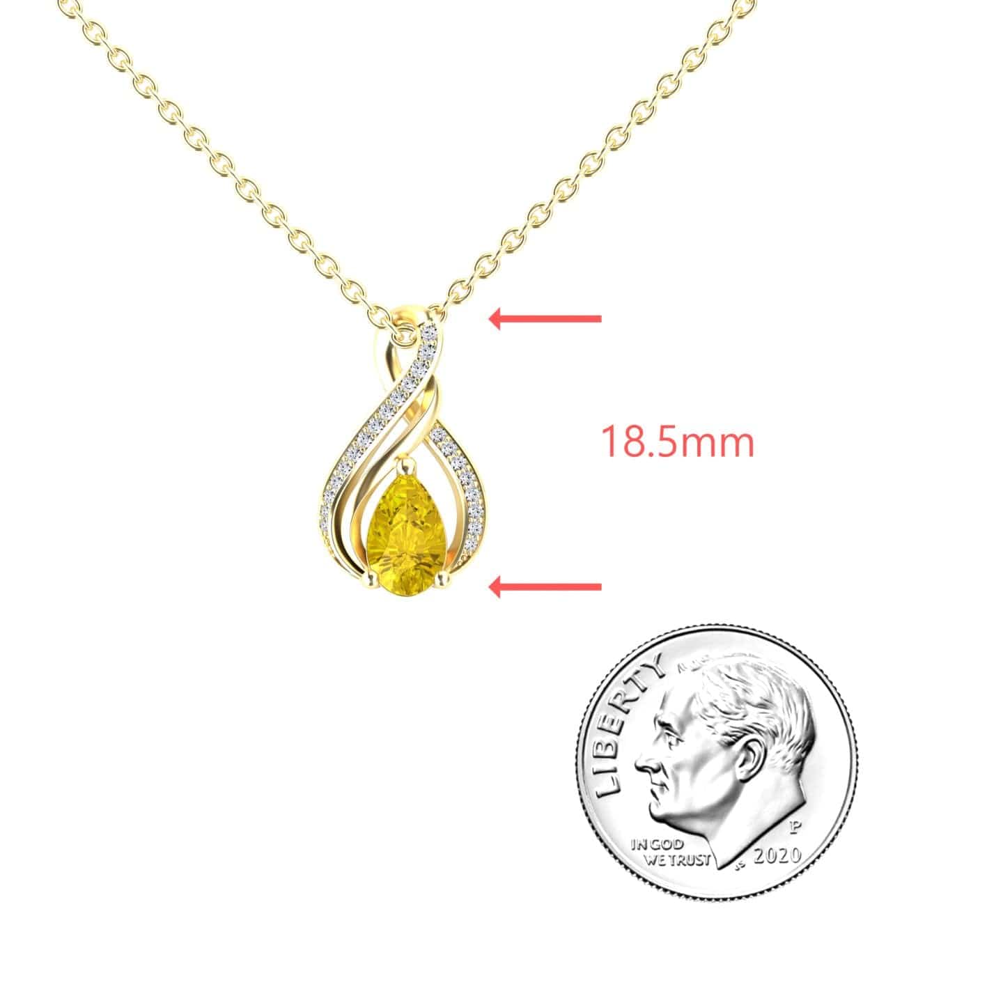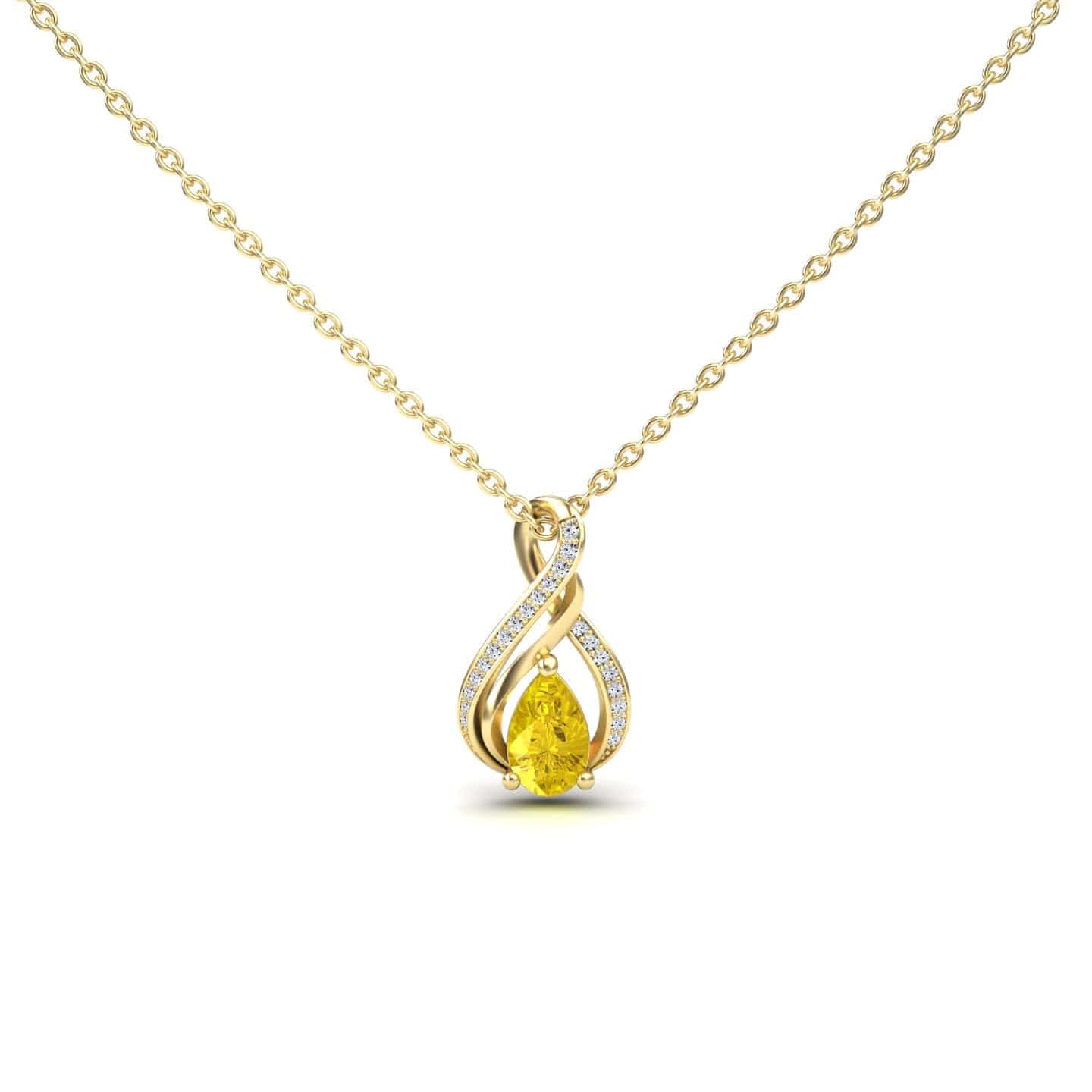 The Yellow Sapphire & Diamond Infinity Twist Necklace - Maddison radiates warmth and brilliance with its pear-shaped yellow sapphire, symbolizing joy and prosperity. Wrapped in an elegant diamond-accented infinity twist, this necklace is a true statement of timeless beauty. Available in White Gold, Rose Gold, Yellow Gold, and Blackened Gold, itโ€™s the perfect blend of sophistication and charm.
