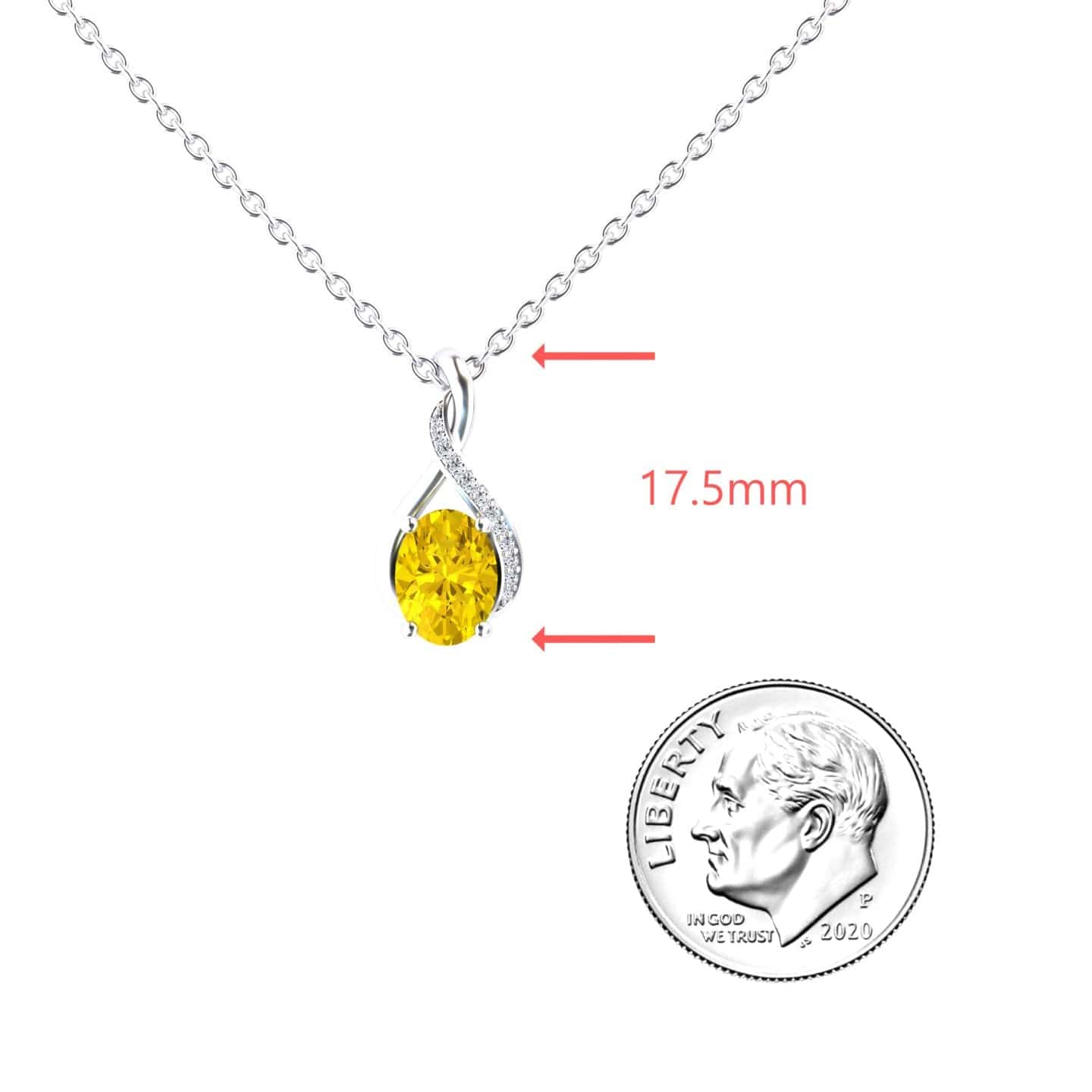 Radiating warmth and brilliance, the Yellow Sapphire & Diamond Swirl Necklace - Natalia showcases a stunning oval-shaped yellow sapphire, elegantly embraced by a swirl of shimmering diamonds. This luminous piece, available in White Gold, Rose Gold, Yellow Gold, and Blackened Gold, adds a touch of sunshine to any jewelry collection.