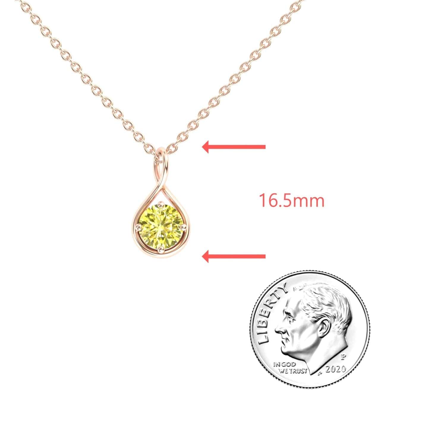 The Yellow Sapphire Infinity Teardrop Necklace - Paulina radiates warmth and brilliance with its round-cut yellow sapphire at the heart of an elegant infinity teardrop pendant. Crafted in 14K gold, this luminous piece symbolizes joy and everlasting elegance. Available in White Gold, Rose Gold, Yellow Gold, and Blackened Gold, it's a sophisticated statement of beauty and grace.